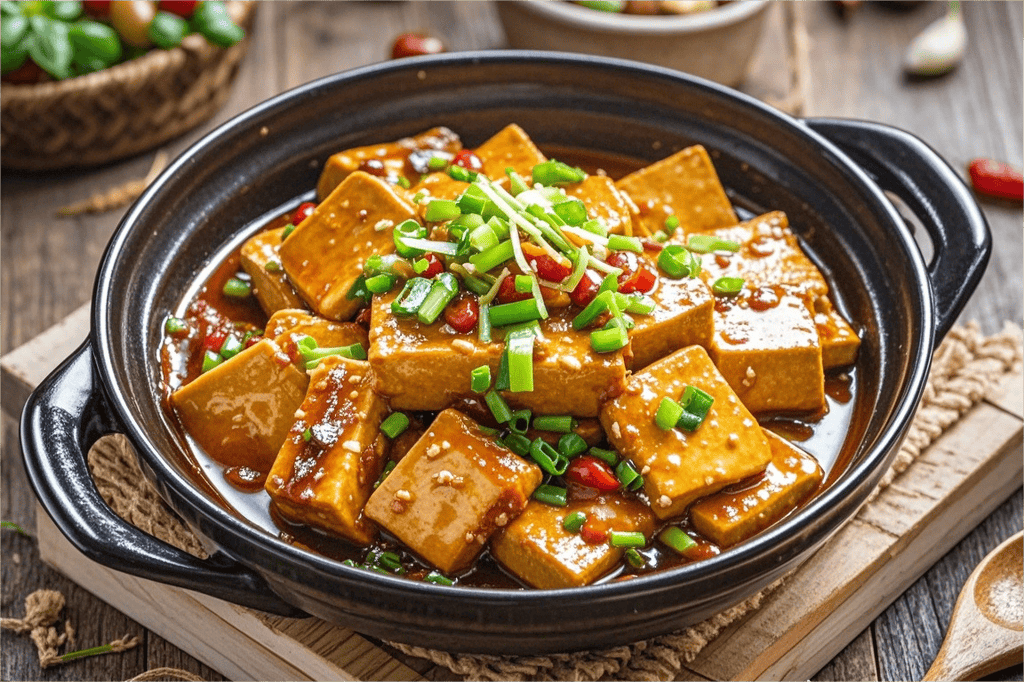 掌握了基础,你的豆腐世界才刚刚打开。它可以是川菜的灵魂“麻婆豆腐”,麻辣鲜香,嫩滑入味;也可以是炖煮的精华“白菜豆腐煲”,热乎鲜美,暖身暖心;甚至可以化身创意“海鲜风味豆腐”,用香菇和紫菜调出媲美海鲜的极致鲜味。